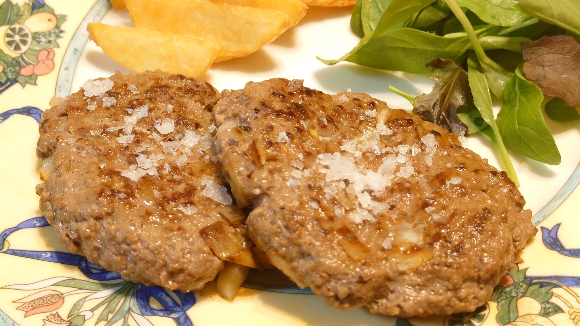 家でも牛100%(赤身多いのが重要)とマルドンの塩があれば美味しく頂けます