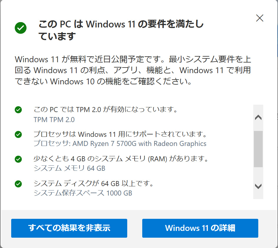 MicrosoftのPC正常性チェックソフトで確認してみたところ、なんと4台ある内の1台が要件通過できず!