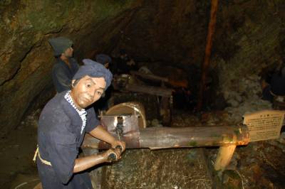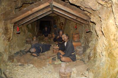 鉱山を出ると、今度は資料館があります。模型や実際の器具が展示されています。