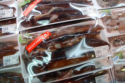 まだまだあります。 今年はイカが豊漁らしく、とても安い値段で売られています。