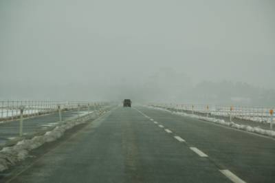 食事も程ほどに・・・移動開始です。 先日通った佐渡2000m滑走路ですが・・・今日は先が見えません。所々視界が悪くなって、少々怖いです・・・。