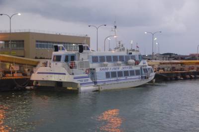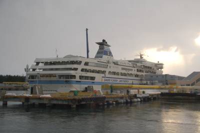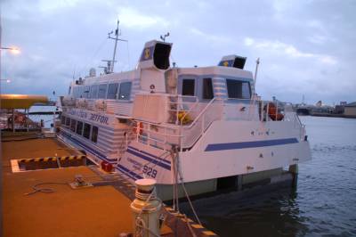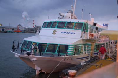 17:00ジャストに新潟港に到着。本当に時間に正確です。 ジェットフォイル「すいせい」を発見。
