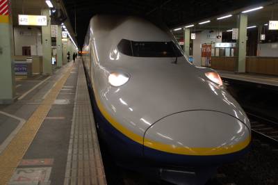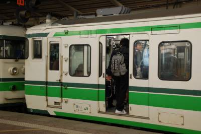 新幹線出発20分前に移動開始。途中ローカル線を見ることができました。17時の時間帯で30分に一本です・・・。すごい混んでいます。