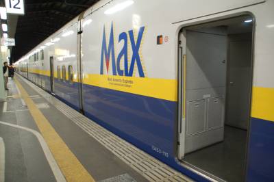 上越新幹線の特徴がもうひとつありました。乗降口がとても広いです。東海道・山陽新幹線の1.5倍はあると思います。