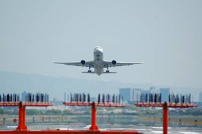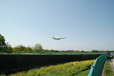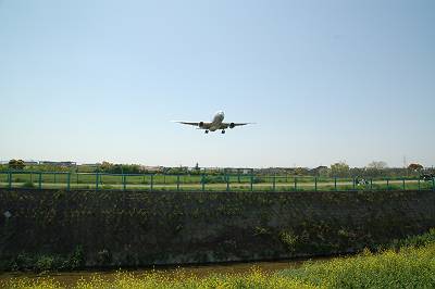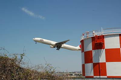 これも途中に見つけた場所ですが・・・。777-300が真横を離陸していきました。