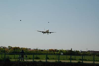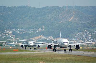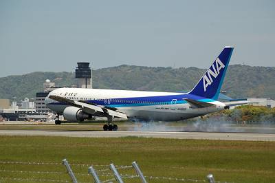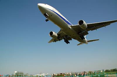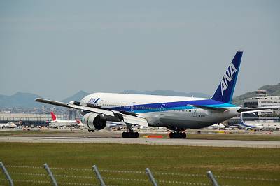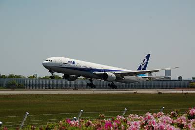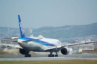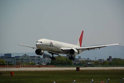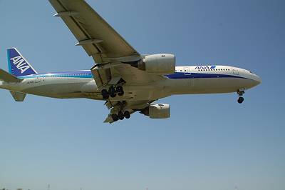 接地マニア(意味不明)の本領発揮! 接地した瞬間を捉えました♪ 接地した瞬間てなぜだかとても好きなんです・・・。 しかし、777-300は本当に胴長です。