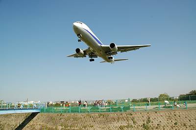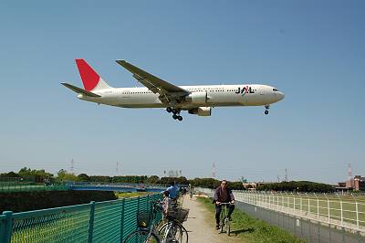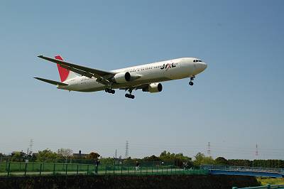 ぼーっとしていたら、突然登場しました!B767-300!!これを見る限り、相当高度が低いです・・・。