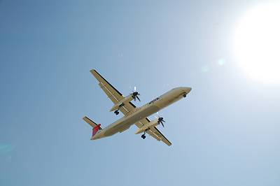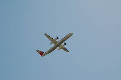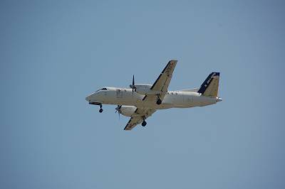ここでいくつか飛来機のご紹介を。 ここでは一番小さいSAAB340でございます。(くどいようですが、トリミングはしていません・・・)