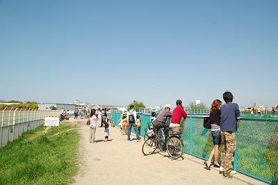 しばらく走って、最初の場所に戻ってきました。が、人がかなり増えていました・・・。すごいですこの状態・・・。ひとつ言えることは、ここで撮影するのに一眼は無くても大丈夫、ということでしょうか。なぜなら、ほとんどの人がコンパクトカメラで撮影しています。