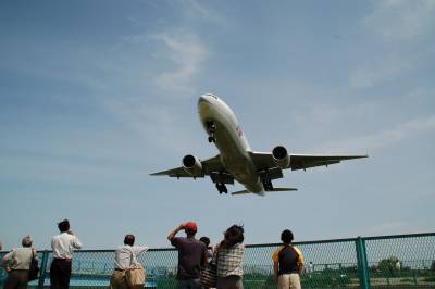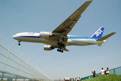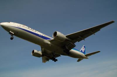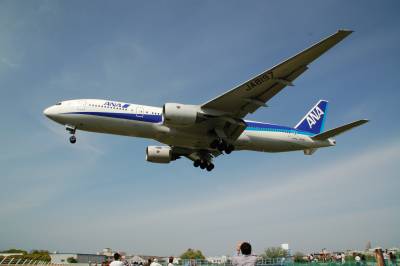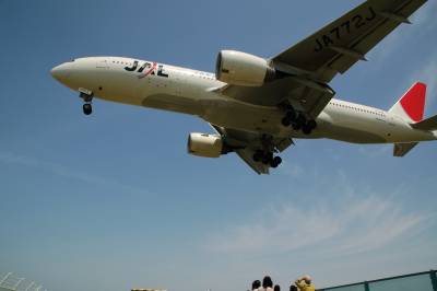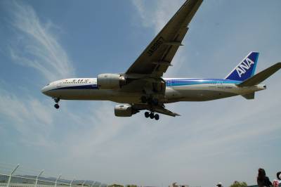 同じ角度で若干引いて撮りましたが、B777-200です。どうしても上の写真の方がバランスが良くなってしまうんです・・・。