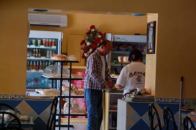 奥のベーカリーコーナーでは誰かがパンを買っていました。
