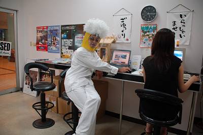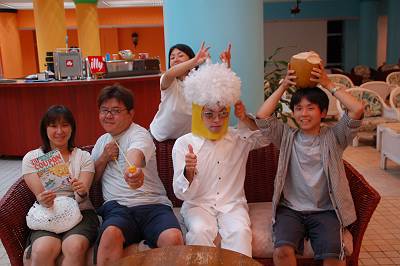 「ダイバーもとさんご夫妻」もこられたので、みんなでそろって記念撮影♪ 全身真っ白にビールのかぶりもの、強烈なインパクトです。