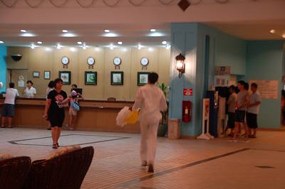ここで先ほど「ロビーに消えていってしまったあの方」が登場! カヨさん、なぜか謝っているように見えますが、なにかしでかしてしまったんでしょうか・・・?