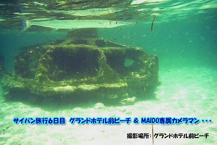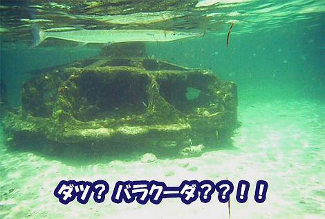 ゆっくりとタンク(実際は砲台の土台らしいです)に近づいていくと、大きくてなが〜い魚が「ヌヌヌッ!」と泳ぎ去っていきました。一瞬、硬直してしまいました。