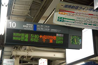 5:40発のエアポート成田(成田空港行)。10時発の飛行機に乗るときの定番とも言えます。 |