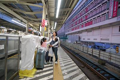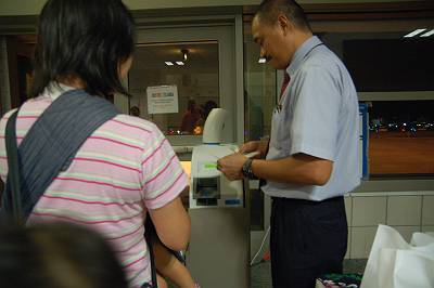 搭乗券は機械には通さず、係員の人が切り取っています。なぜ・・・? |