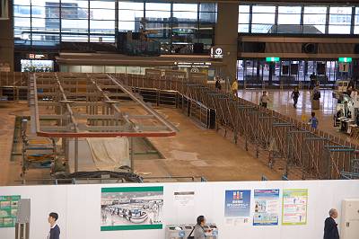 北側出発口付近、新しいカウンターを作っているのか工事中でした。 |