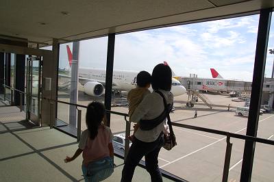 優先搭乗(幼児連れなので・・・)で飛行機へ。 |