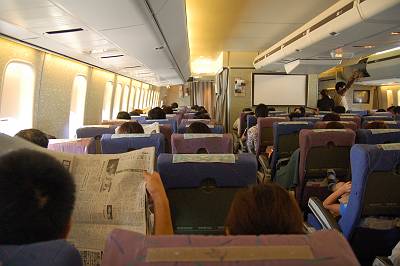 搭乗して10分後、サイパンに向けて飛び立ちました。10分後です。19:33分に搭乗して19:43に離陸・・・。定刻出発は20:00なんですが・・・。^^; |