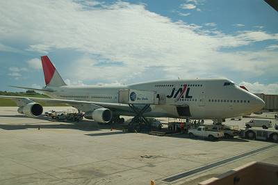さっきまで乗っていたクラシックジャンボです。(747-300 JA812J)折り返しで成田へ出発です。 |
