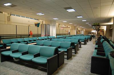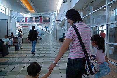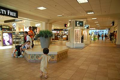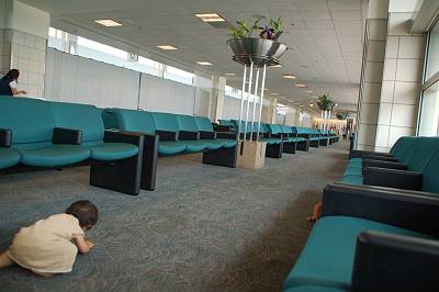 とてもきれいな空港です。右下にあるのはフードスタンドです。飲み物を持ち込めないのでココで買うしかないのですが、ひとつ$3もします。(スーパーで買うと$1位のものですが・・・) |