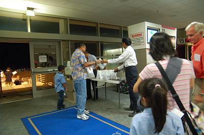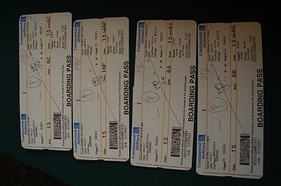 といった感じで、搭乗口にまた戻ってくる面白いシステムです。成田で乗継手続きをしていたおかげか、入国審査場で待っているときにコンチネンタルの搭乗券をいきなり渡されて・・・なんだかとても複雑です。^^; |