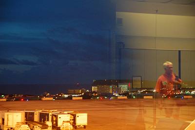 空港の向こうに見えるのはグアムのタモン地区です。大きなホテルがたくさん見えます。(光の具合でちょっと怖い写真になってしまいましたが・・・) |
