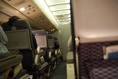 歩きながら写真をとりまくってようやく搭乗。 この飛行機は後部左側からの搭乗がスタンダードのようです。 |