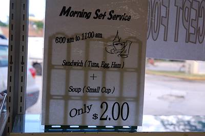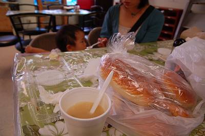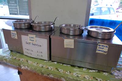 スープは4種類あってスモールカップが$1、ビッグカップが$1.5。 |