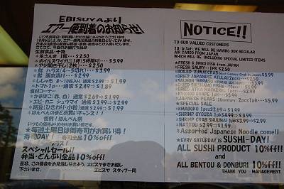 店の入り口にはしっかりと「お買い得情報」が掲示されています。これを見ておくとさらにお買い得感があること間違いなし! |