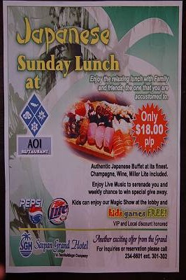 明日のテニアン行きツアーを予約しようとしたところ、台風の影響によりビーチクローズとの悲しい知らせが。2日間はビーチは無理だろうとのことで、10日に延期を決定。9日に再度お願いすることにして退散・・・。 |