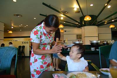「はぁ〜い♪」と言って手をたたくこと。これとさよならするときの「ばぁ〜い♪」を覚えました。 |
