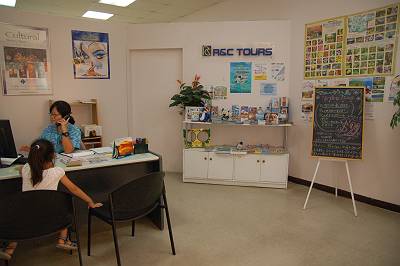 明日のテニアン行きを予約するべく、ツアーデスク(R&Cツアーズ)へ。ここはMAIDOのネットスペースがあった場所ですが、今はR&Cツアーズが1部屋まるまる使用しています。 |