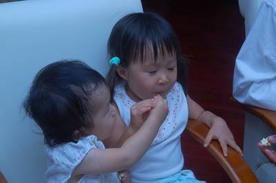 。(年の差たった一才ですが・・・) ポップコーンを無理やり口に放り込むのを繰り返し・・・完全にワルです。 |