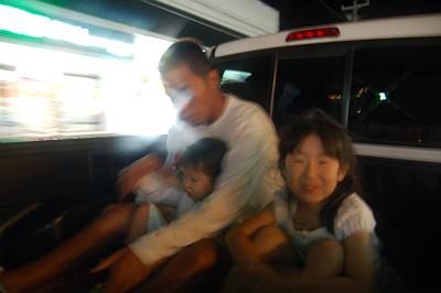 初めて車の荷台に乗ったのですが、これがまた感動! 夜風にあたりながら、また夜空の星を見ながら良い時間を過ごせました♪(写真小さいですが・・・)