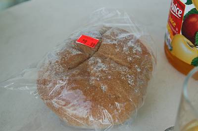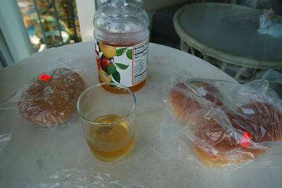 朝食は前日にEBISUYAで調達しておいたパンとジュースです。 |