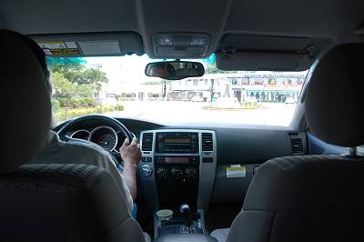 車に乗って、いざ出発! 先に同ツアーに参加の二人組が乗っておられました。 |