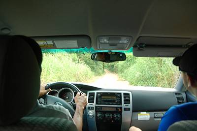 オフロードにも関わらず車はさらに加速していき・・・ぴょんぴょん跳ねながら走っていきます。細い道なのに、まさにラリーカー状態でです。^^ |