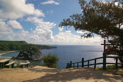 景色として見るには最高のポイントです。写真では分かりませんが、とても高い場所です。真正面の海際がバンザイクリフです。