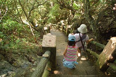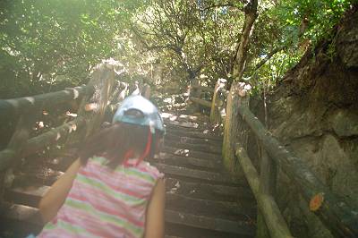 この階段、とても急です。しかもこの急勾配で110段あります。ダイバーはダイビング機材フル装着の状態でここを降りていきます。(昨年体験済^^) |