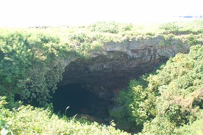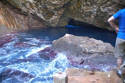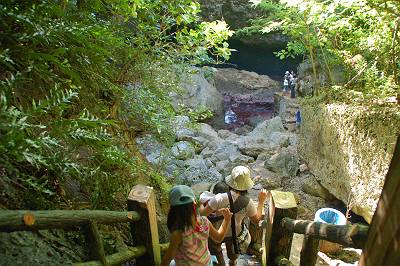 展望からグロットを見下ろしてみました。ココから見るとぽっかりと口を開けた洞窟であることがよく分かります。 |