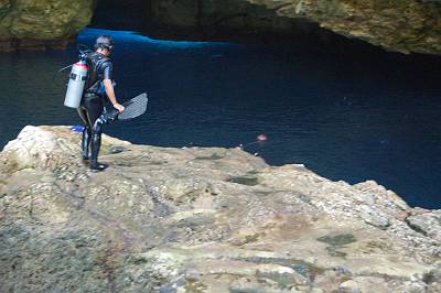 次なるポイントは「グロット」。サイパンのダイビングポイントとしてはとても有名です。 |