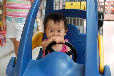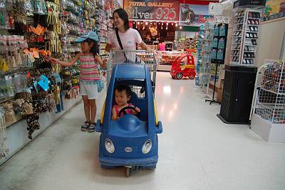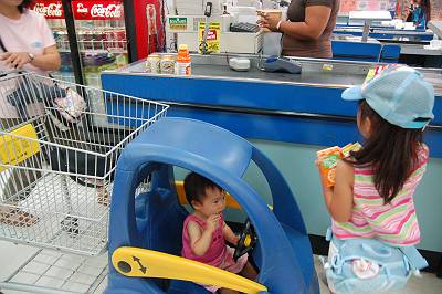 ぽんたごんは車型カートに収容してお買い物です。 |