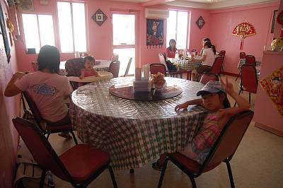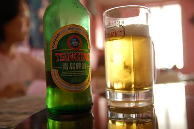 ビールを飲む人がいたので(誰とは言いませんが・・・)運ばれてきた中国産チンタオビール。ランチタイムはなんと$2です・・・。 |
