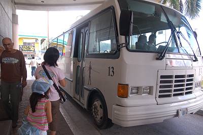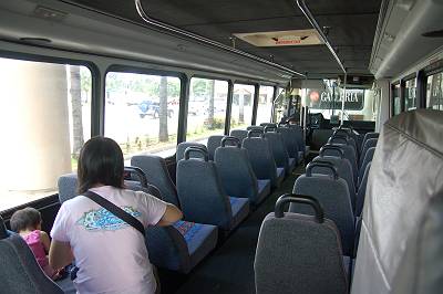 DFSの無料シャトルバスでグランドホテルへ向かいます。南行きと北行きを間違えないように注意が必要です。 |