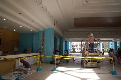 グランドホテルに戻ると、なんとロビーフロント付近の塗装工事をしていました。 |