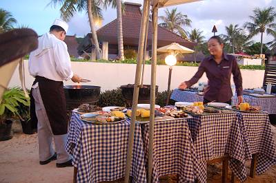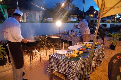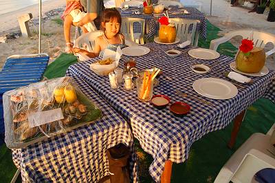 と思ったら、いきなり「生きたロブスター」が登場!冷蔵庫に入っていたのか、湯気が出ていたのにちょっとびっくり・・・。BBQの開始と共に持っていかれてしまいました。^^; |