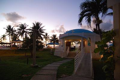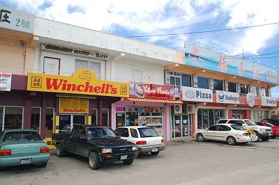 レストラン・コーラルのあった場所では学生の団体さんが夕食の最中でした。サイパンを選んでくれたことに感謝、です。 |
