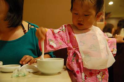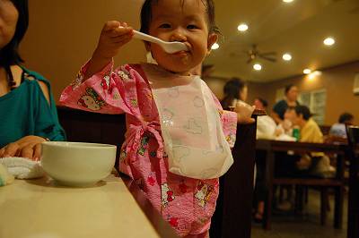 あっという間に完食!サルきちが大人とほぼ同じ量を食べたのにはびっくりしましたが・・・。 |