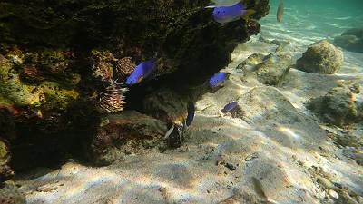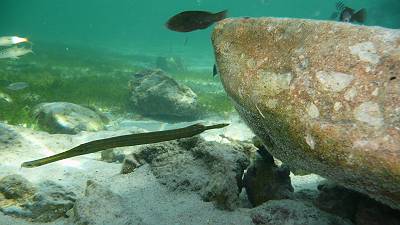 潜って潜行していたら岩の陰に「ヤガラ」を発見。 |